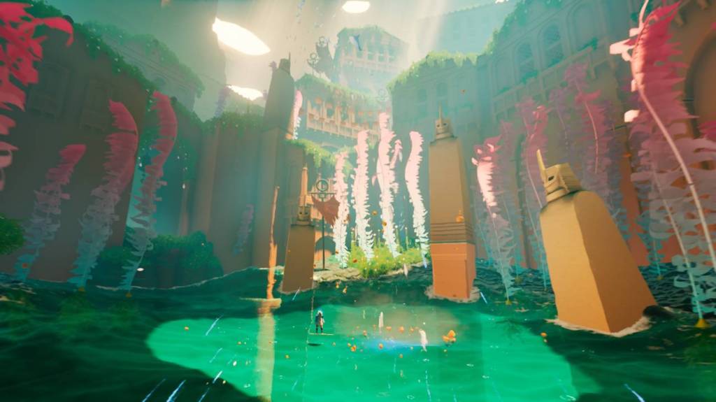 The game is a bit hard to explain, but you have this sword, that works like a snowboard and you surf around deserts turning them back into water landscapes, or the sea I guess.
